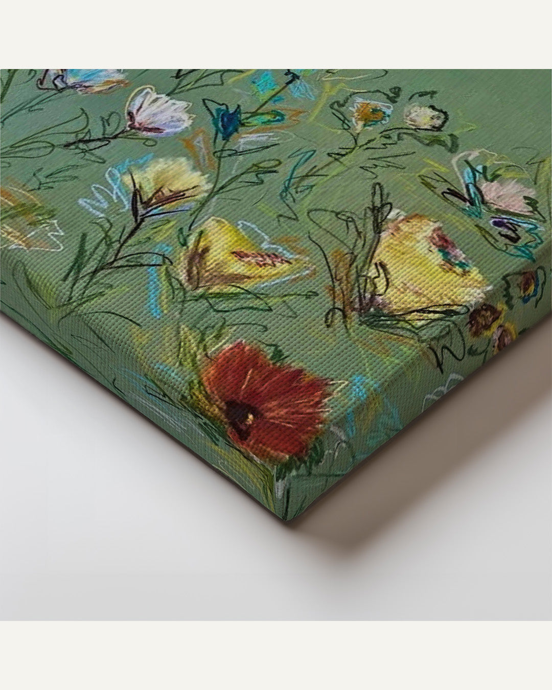 - Float Framed Canvas: Canvases are printed using a large format giclée printer, then professionally stretched and inserted into a float frame with approximately 1/4" reveal between the canvas edge and frame. Canvases are "glass-free." Float frames are offered in a natural solid wood frame and have a frame depth of approximately 2 3/16".