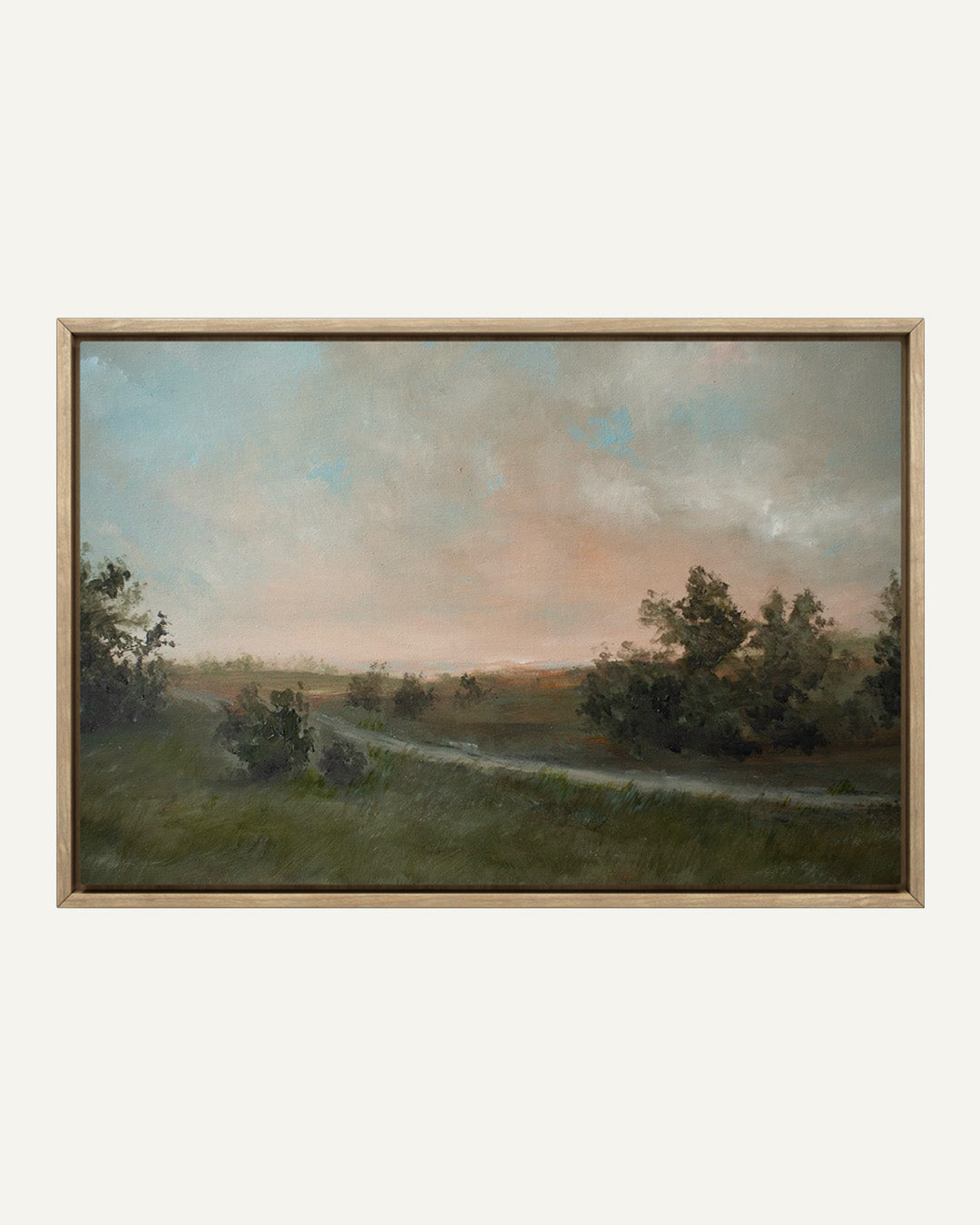 • Float Framed Canvas: Canvases are printed using a large format giclée printer, then professionally stretched and inserted into a float frame with  approximately 1/4" reveal between the canvas edge and frame. Canvases are "glass-free." Float frames are offered in a natural solid wood frame and have a frame depth of approximately 2 3/16".