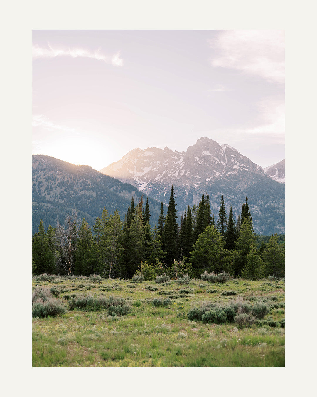 This photo was taken in the Grand Teton National Park of the Grand Teton Mountains. My husband and I were in the area for a wedding and we decided the night before that, since we were in such a beautiful place, to go out and explore the National Park at sunset. It was during the summer and perfect weather but there was still snow on the highest points of the mountain. The sun started to set and the light was streaming through the mountains, a perfect time to capture a photo.