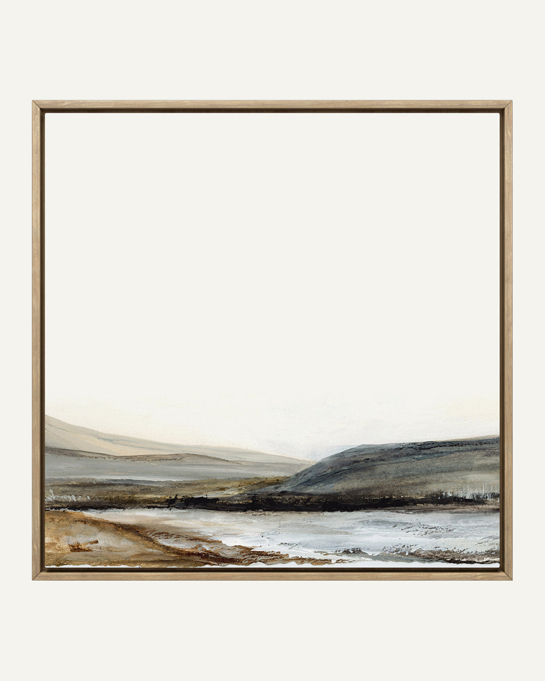• Float Framed Canvas: Canvases are printed using a large format giclée printer, then professionally stretched and inserted into a float frame with  approximately 1/4" reveal between the canvas edge and frame. Canvases are "glass-free." Float frames are offered in a natural solid wood frame and have a frame depth of approximately 2 3/16".