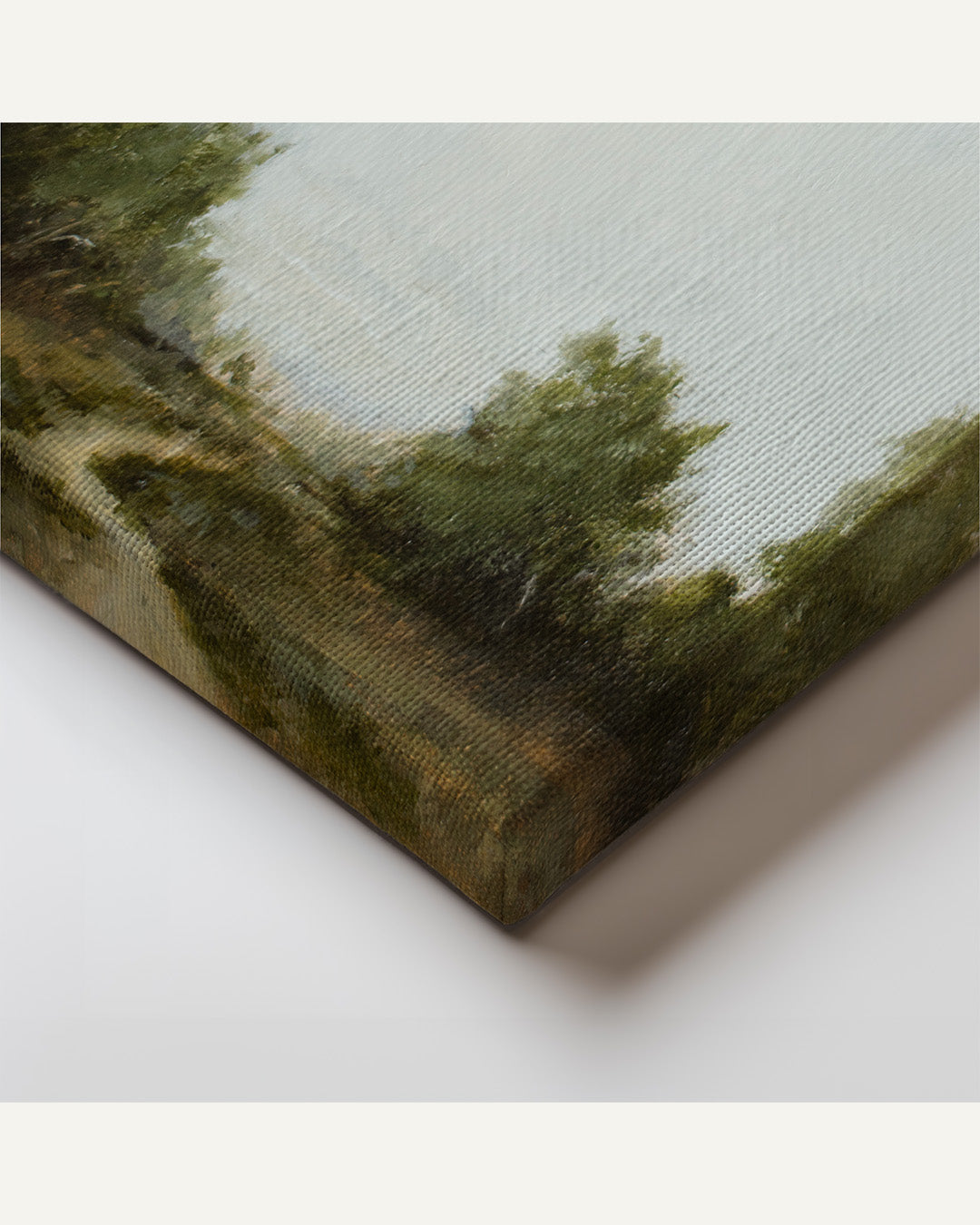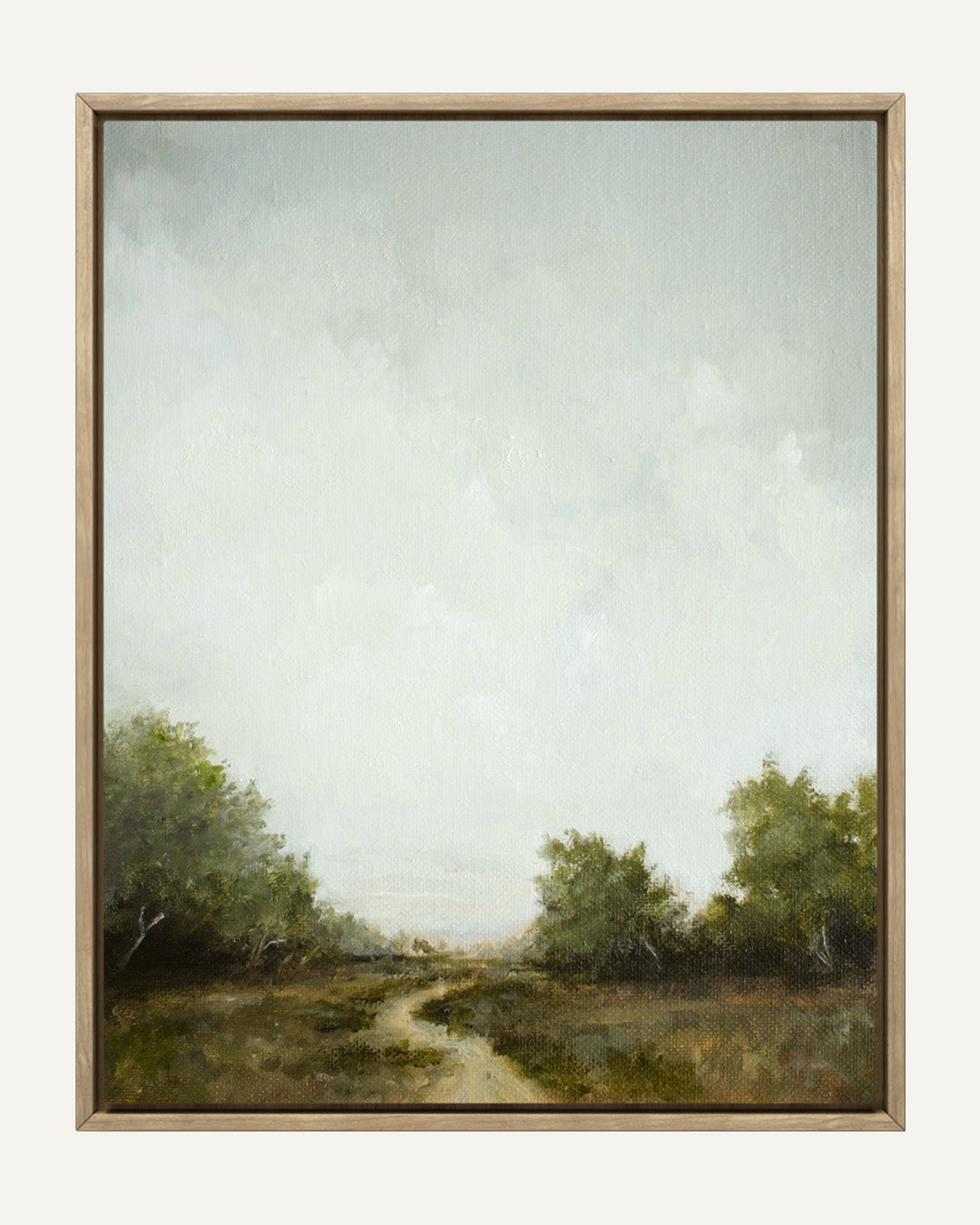 - Float Framed Canvas: Canvases are printed using a large format giclée printer, then professionally stretched and inserted into a float frame with approximately 1/4" reveal between the canvas edge and frame. Canvases are "glass-free." Float frames are offered in a natural solid wood frame and have a frame depth of approximately 2 3/16".