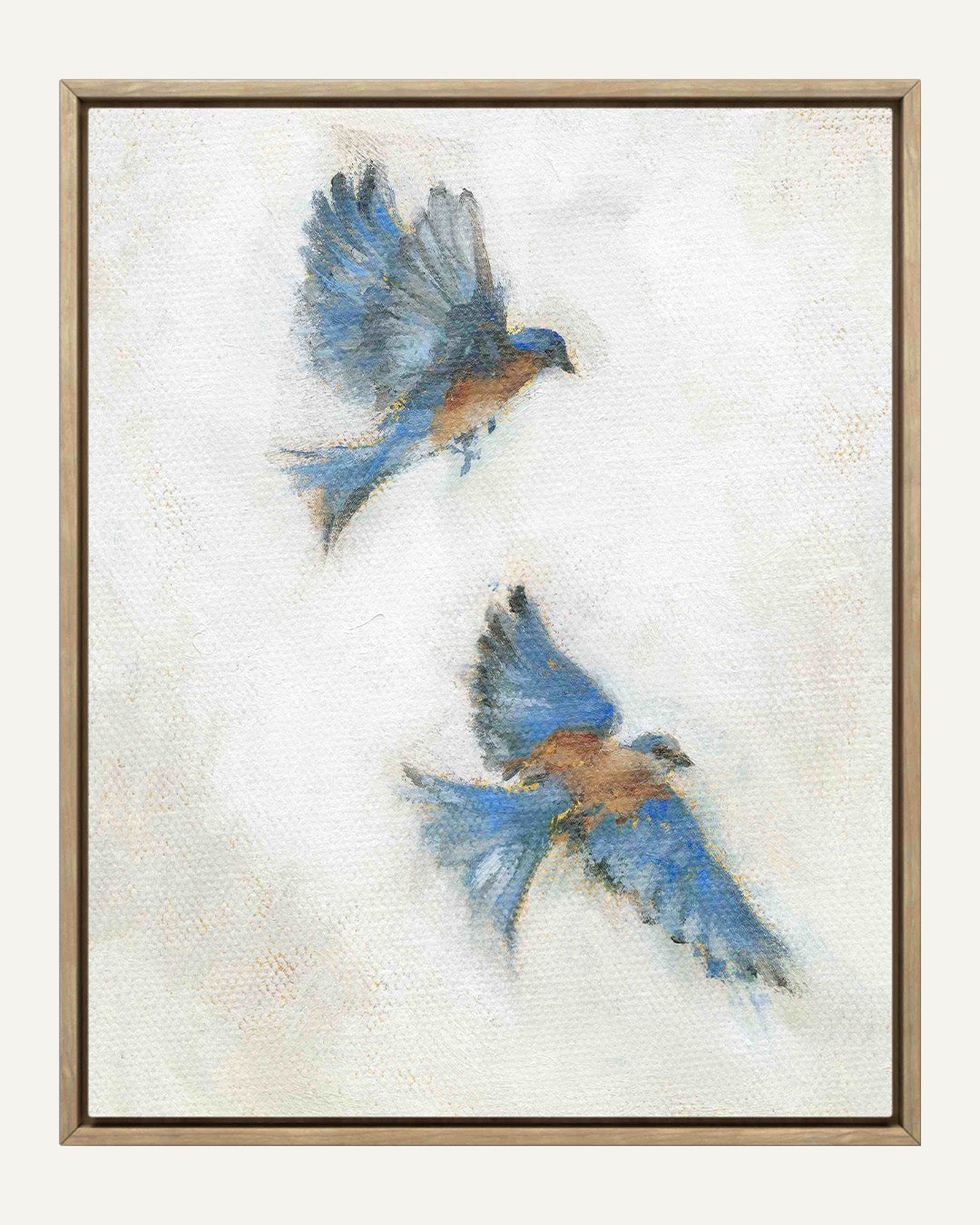 - Float Framed Canvas: Canvases are printed using a large format giclée printer, then professionally stretched and inserted into a float frame with approximately 1/4" reveal between the canvas edge and frame. Canvases are "glass-free." Float frames are offered in a natural solid wood frame and have a frame depth of approximately 2 3/16".