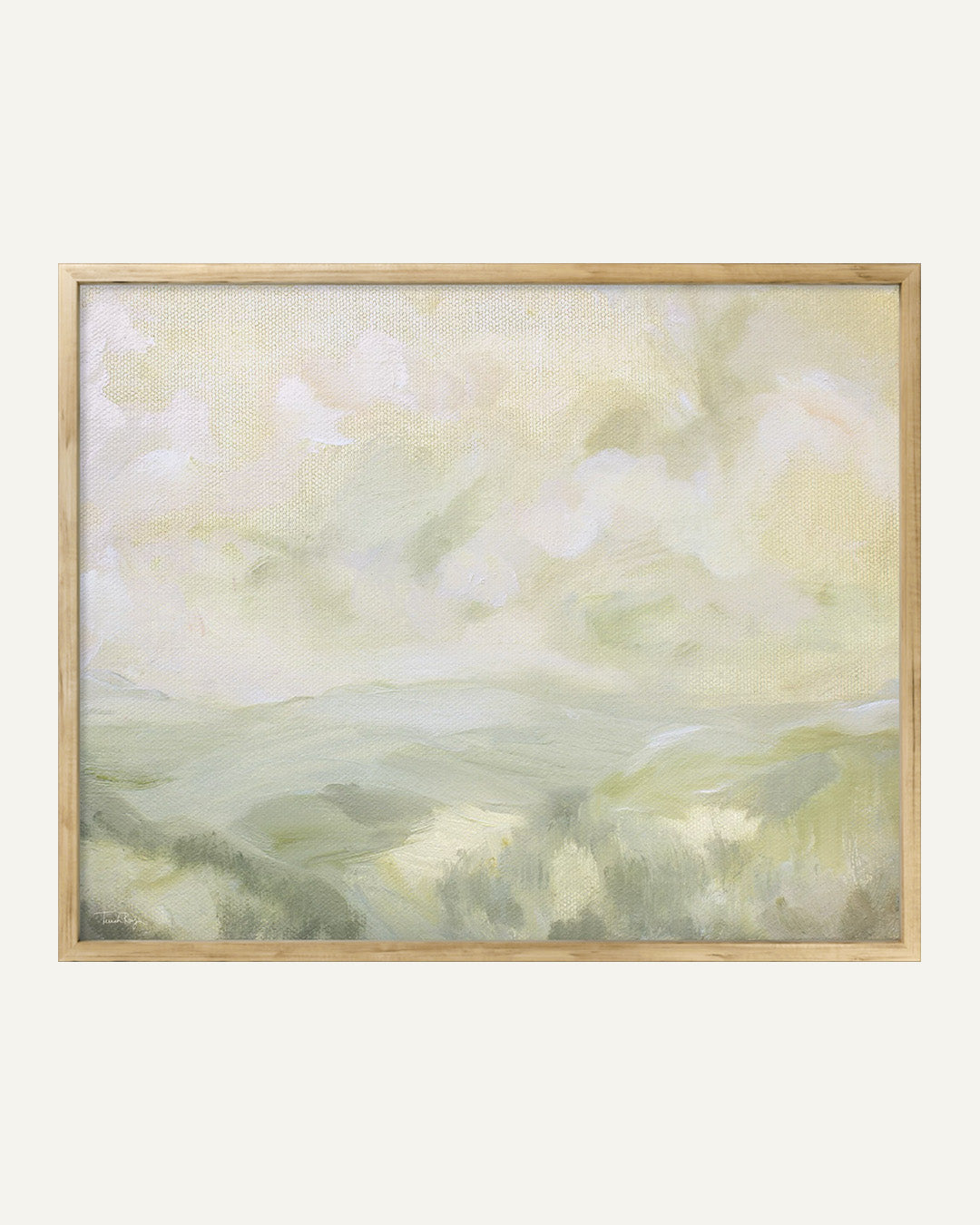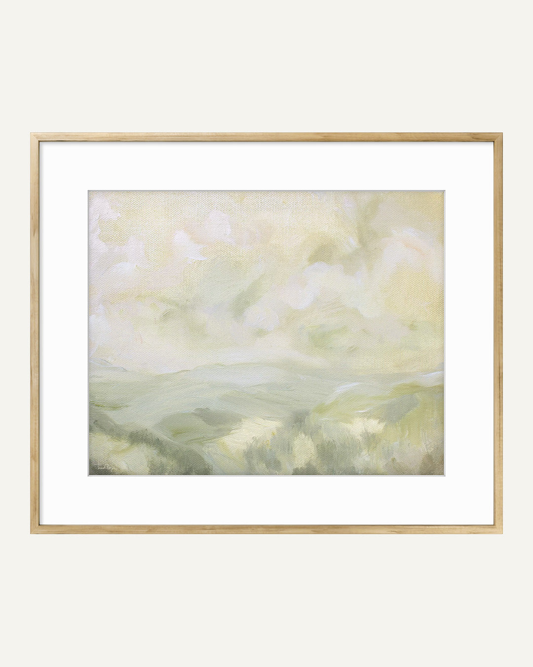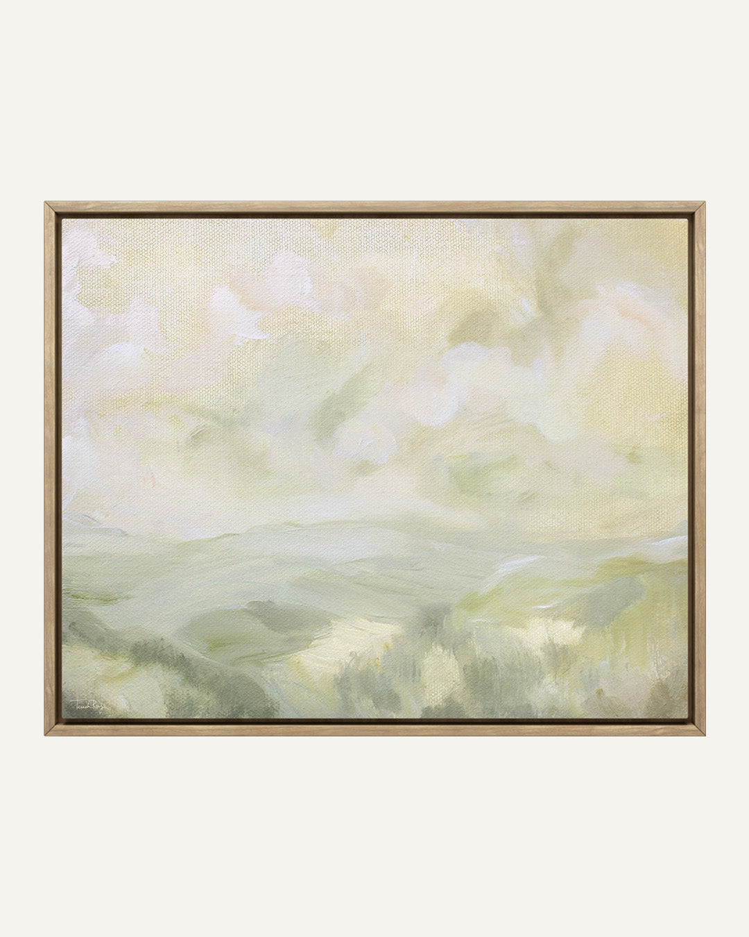 - Float Framed Canvas: Canvases are printed using a large format giclée printer, then professionally stretched and inserted into a float frame with approximately 1/4" reveal between the canvas edge and frame. Canvases are "glass-free." Float frames are offered in a natural solid wood frame and have a frame depth of approximately 2 3/16".