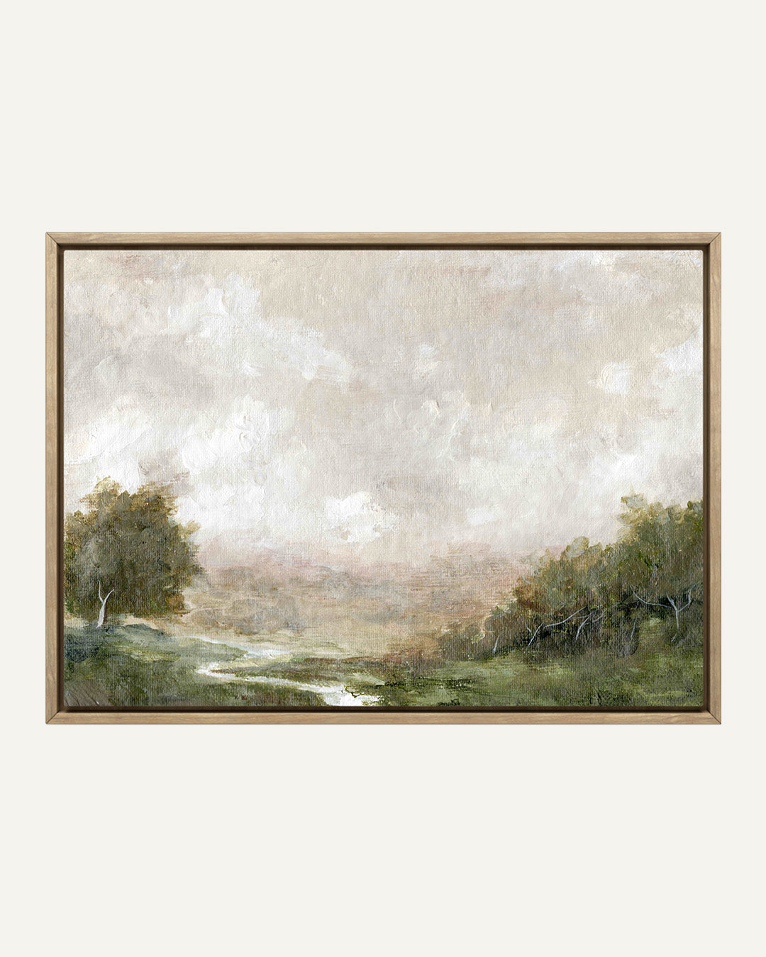 • Float Framed Canvas: Canvases are printed using a large format giclée printer, then professionally stretched and inserted into a float frame with  approximately 1/4" reveal between the canvas edge and frame. Canvases are "glass-free." Float frames are offered in a natural solid wood frame and have a frame depth of approximately 2 3/16".